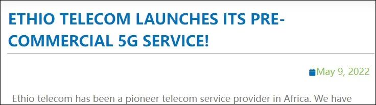 5月9日,埃塞俄比亚电信公司(Ethio Telecom)宣布,启动5G网络商用服务前测试,首先在首都亚的斯亚贝巴6个区域启动5G网络服务,未来将逐步扩大覆盖范围,而埃塞电信本次5G服务的设备供应商则正是此前被美国推上风口浪尖的华为。