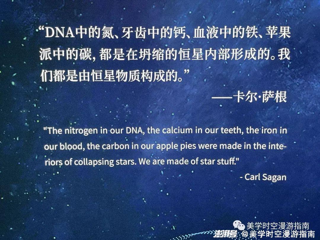 “你们都是星尘。宇宙中每一秒都有上千颗恒星诞生,像银河系一样莫名其妙的事物形成过千亿次。有时一个星体还没走完银河系的一半路程就在太空中爆炸, 我们能在这里活着, 此刻,这本身就是一个奇迹。”