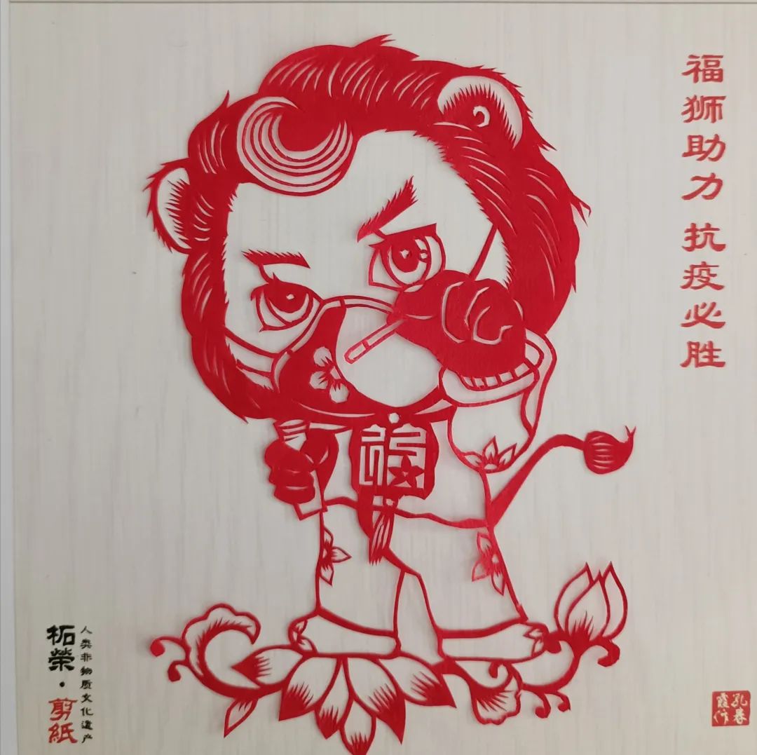 有感于泉州“福狮医疗队”驰援宁德,送来福气,孔春霞创作《抗疫福狮》剪纸作品。柘荣县委宣传部 供图