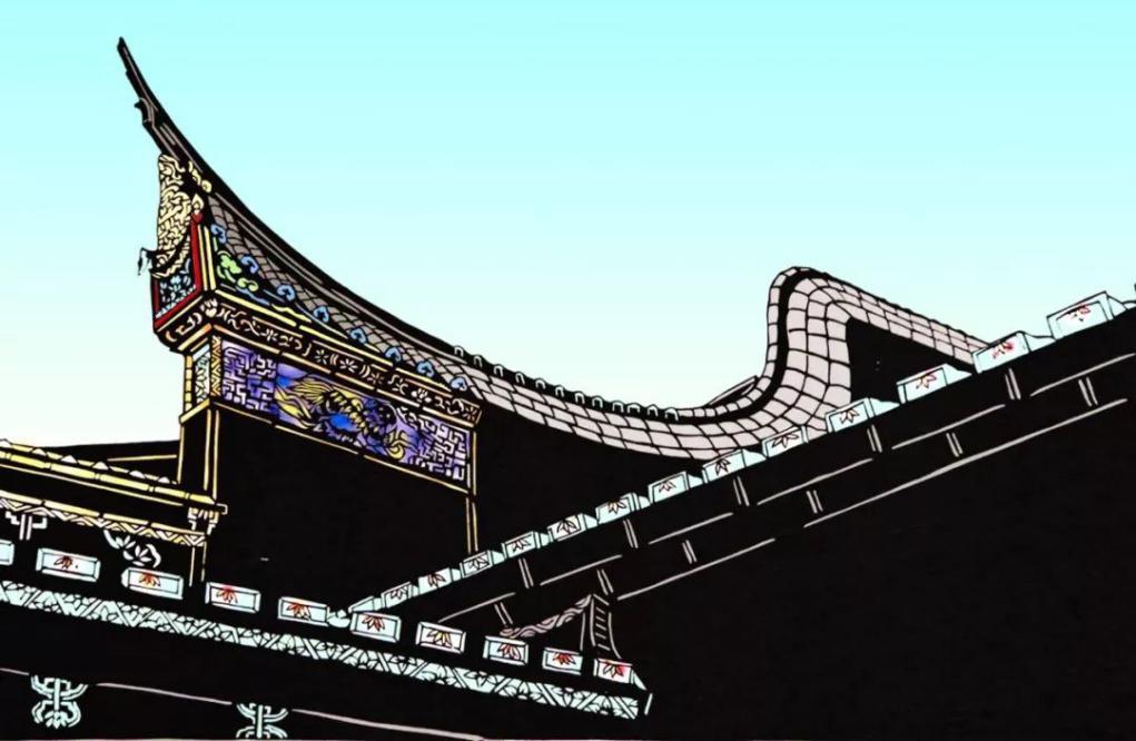 孔春霞作品《飞檐》大胆运用点色、衬色、套色手法,丰富剪纸的色彩。画面主体大块面黑色和视觉焦点部位点缀的彩色形成强烈的视觉反差,形成了昂扬的气势。柘荣县委宣传部 供图