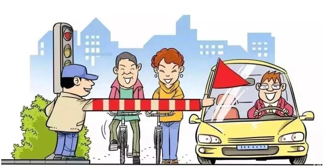不能骑车横冲直闯、争道强行,与机动车抢道。