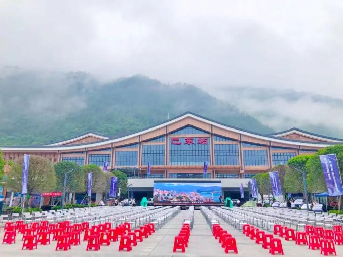 以“巴东站”为背景的启动仪式舞台已搭建完成,静待各位领导嘉宾的到来。