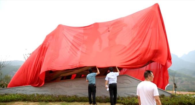 神秘“纤夫”雕像红绸遮盖,明天为你揭开神秘面纱。
