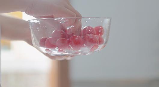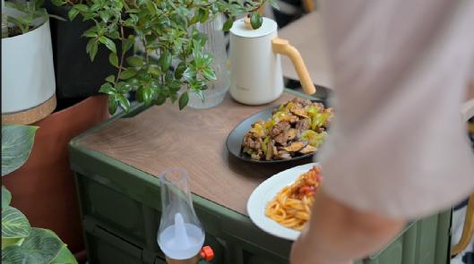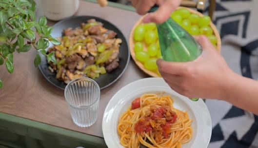 为了让观众在看vlog时有代入感,可以穿插一些生动的情节点,避免流水线式的记录。比如这里洗干净西红柿之后,可以尝一口,增加生活气息。虽然没有露脸,但在画外音也配上了咬西红柿的音效。突出人性化的细节,是视频呈现最有力的小技巧。