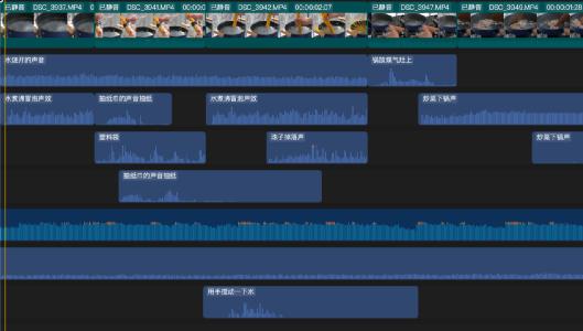 这里要注意的一点是,拍摄炒菜的画面,现场收音会受到抽油烟机的影响,因噪音过大导致原声无法使用。那么就需要我们在后期剪辑上多花些心思——将音效配上还原出来!