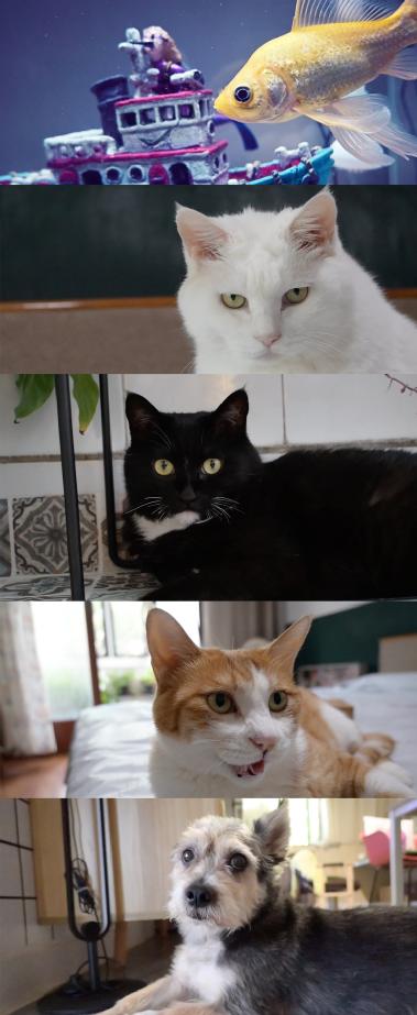 虽然我收养了三只猫咪一只狗狗,但他们既不是名贵品种,颜值也不是很高。所以我采用了拟人化“访谈式”的拍摄方法,再结合后期剪辑的手法,来赋予vlog有趣的创意。通过整理日常与猫狗互动玩闹的场景片段,进行二次创作,效果也很不错。