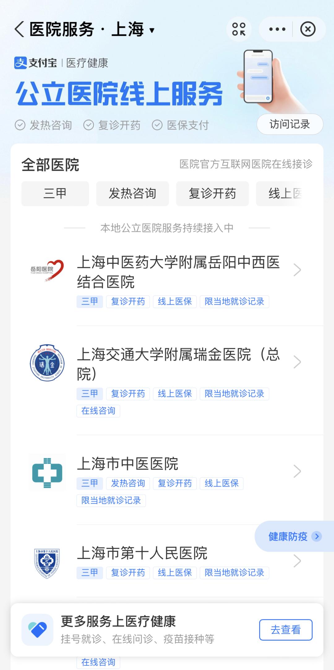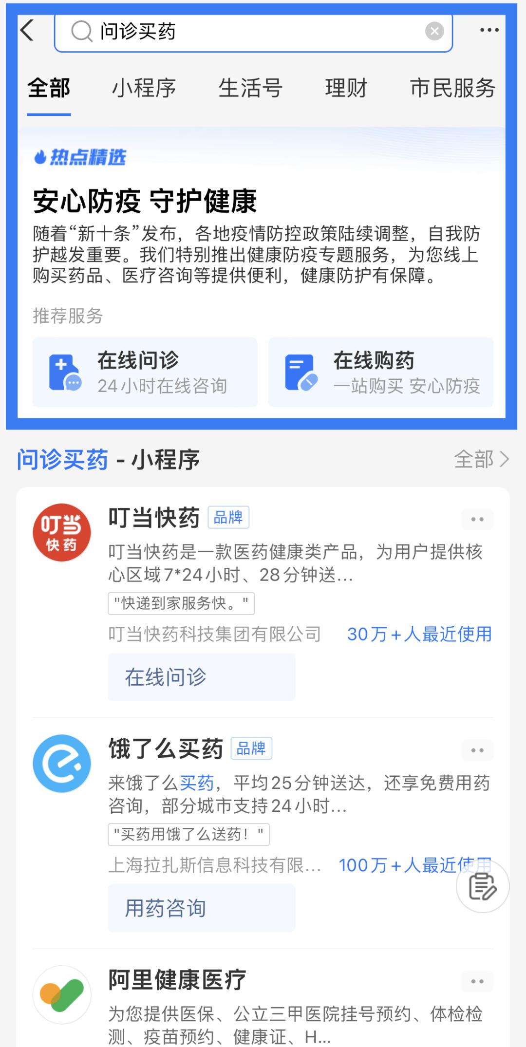 支付宝搜“问诊买药”,上海多家三级公立医院支持在线咨询及买药!