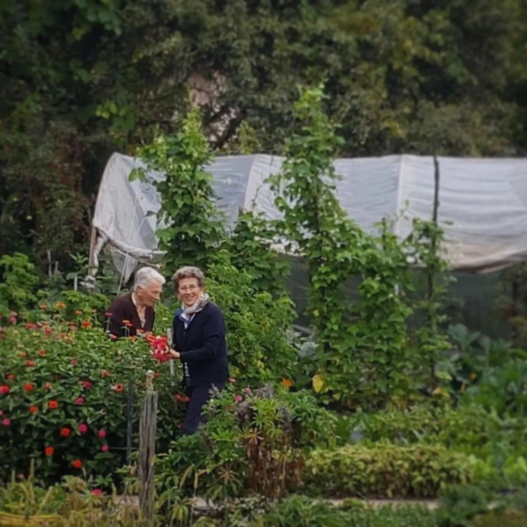 ▲ 在菜园里的两姐妹。如今姐妹俩已年迈,