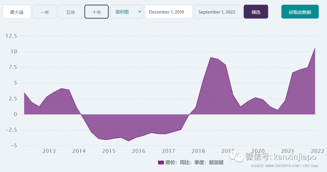 其实,新加坡近十年来房价持续平稳,甚至在2014年至2018年呈下跌趋势。但在2020年后,房价持续走高,在2022年达到近十年最高点。