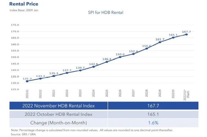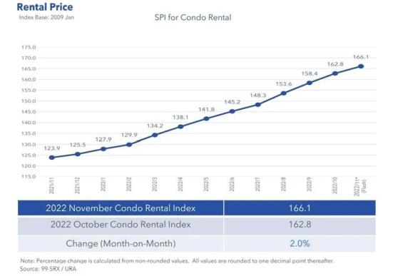(图源:CEIC,近十年涨跌走势)上个月新加坡建屋局(HDB)给出确切数据,自2020年疫情以来,房租已连续增长28个月。近日参考非官方预估数据,私人公寓及组屋租金并没有下降的趋势,截至11月再次刷新记录,已连续上涨29个月!