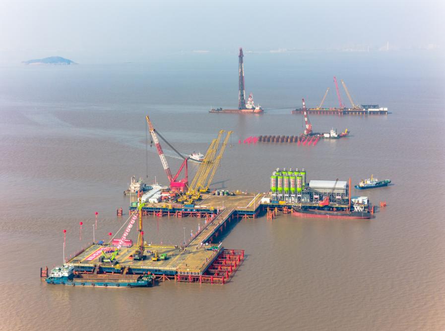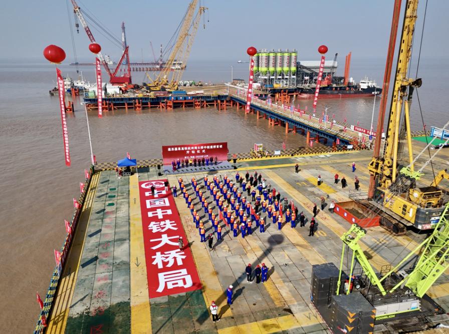 12月25日11时18分,在杭州湾海域84号海上施工平台钻机轰鸣声中,南通至宁波高铁杭州湾跨海铁路桥控制性工程——中航道桥首根钻孔桩开钻,标志着世界最长跨海高速铁路桥——杭州湾跨海铁路桥中航道桥建设取得突破性进展。