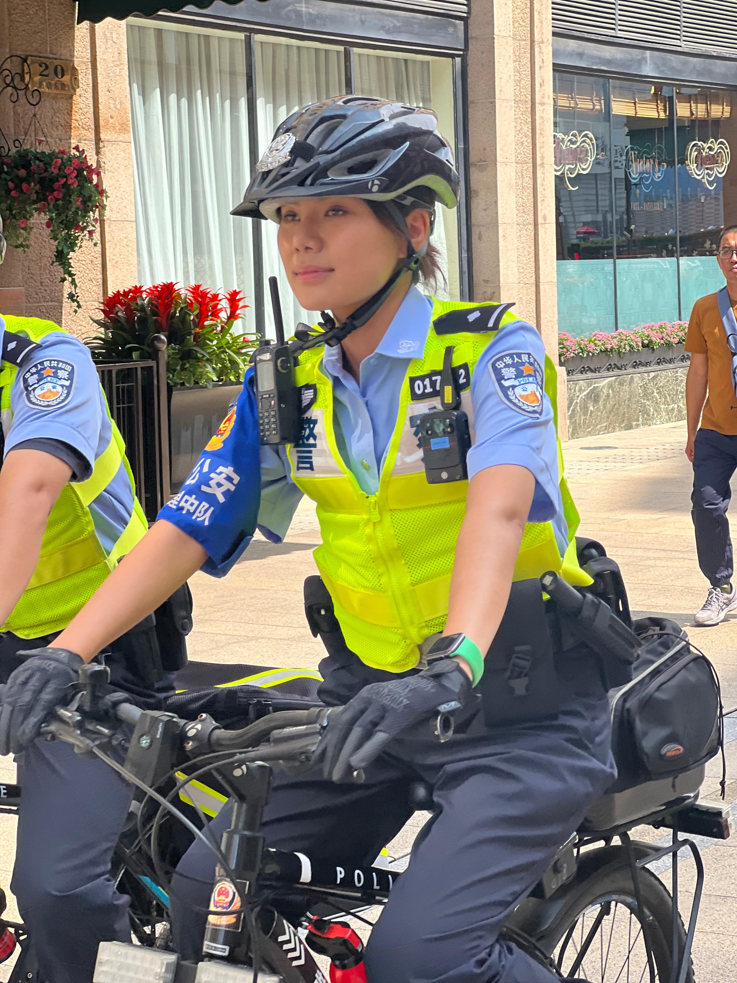 作为南京路步行街管理中队的民警,徐懿和同事们工作中最常用的交通工具是自行车。对此,钟强介绍说,在南京路步行街上骑自行车执勤,市民群众接受程度比较高,相对比较安全,也符合快速反应的要求。