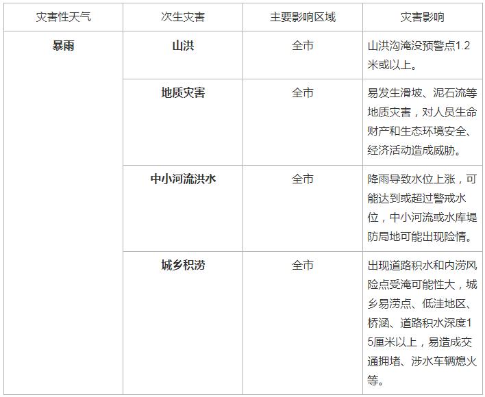 暴雨灾害风险预估结合我市气象灾害综合风险普查成果,预计未来十天我市暴雨灾害风险等级高(见附表),道路湿滑、积水易造成交通拥堵,部分城乡、低洼地区可能发生积涝;发生山洪、地质灾害的风险高,中小河流有超警戒水位风险。