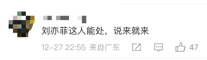 网友也纷纷感慨:刘亦菲说来就来!能处!