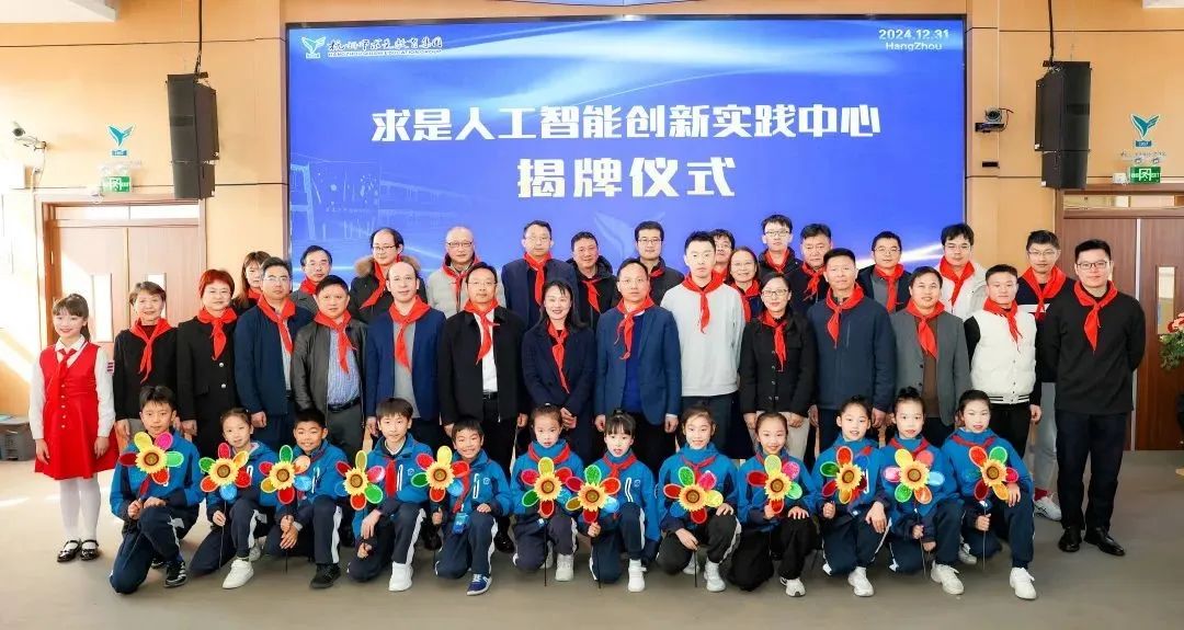 2024年12月31日,“求是人工智能创新实践中心”揭牌仪式在求是教育集团浙大附小举行。吴飞、孙凌云等浙江大学人工智能领域专家学者及省市区相关职能部门负责人参加揭牌仪式。