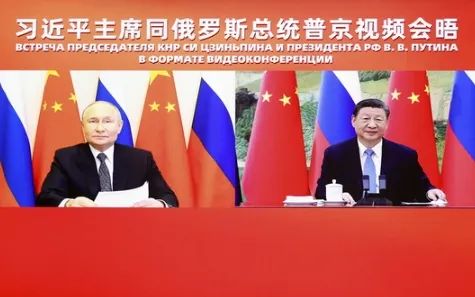 习近平同俄罗斯总统普京举行视频会晤2025年1月21日下午,国家主席习近平在北京人民大会堂同俄罗斯总统普京举行视频会晤。