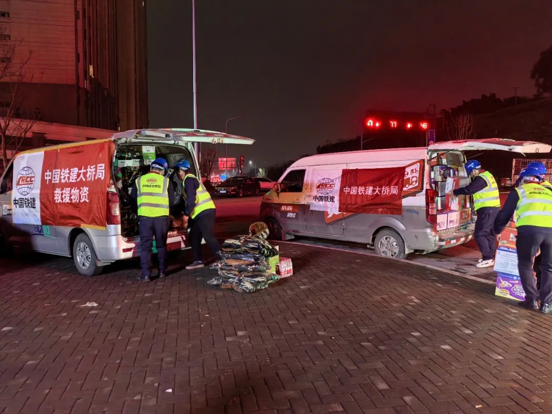 中国铁建大桥局快速集结人员物资,成立护送救援队,于2月9日4时抵达筠连县沐爱镇人民政府,交付救援物资方便面300件、矿泉水200件、自热米饭150件、火腿肠30件、手电及棉衣各100套,并于现场待命,时刻准备根据政府指示参与救援。