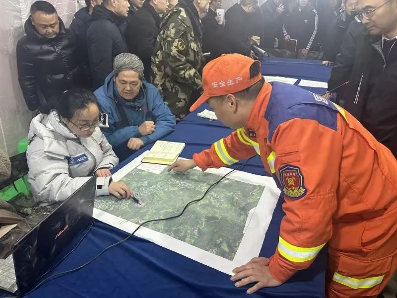 中国电建所属成都院紧急组建应急管理部工程应急救援勘测队,火速派出4名应急专家及2名辅助人员携带边坡雷达、无人机、地理勘测信息系统,于2月8日晚赶赴现场参与抢险工作。救援队于9日凌晨到达现场,随即参与救援任务。采用无人机快速获取现场三维影像,于上午9时左右生成三维倾斜摄影模型,构建现场救援实景,形成滑坡体应急图,前后方专家会商后初拟救援现场勘测方案,供现场救援决策。
