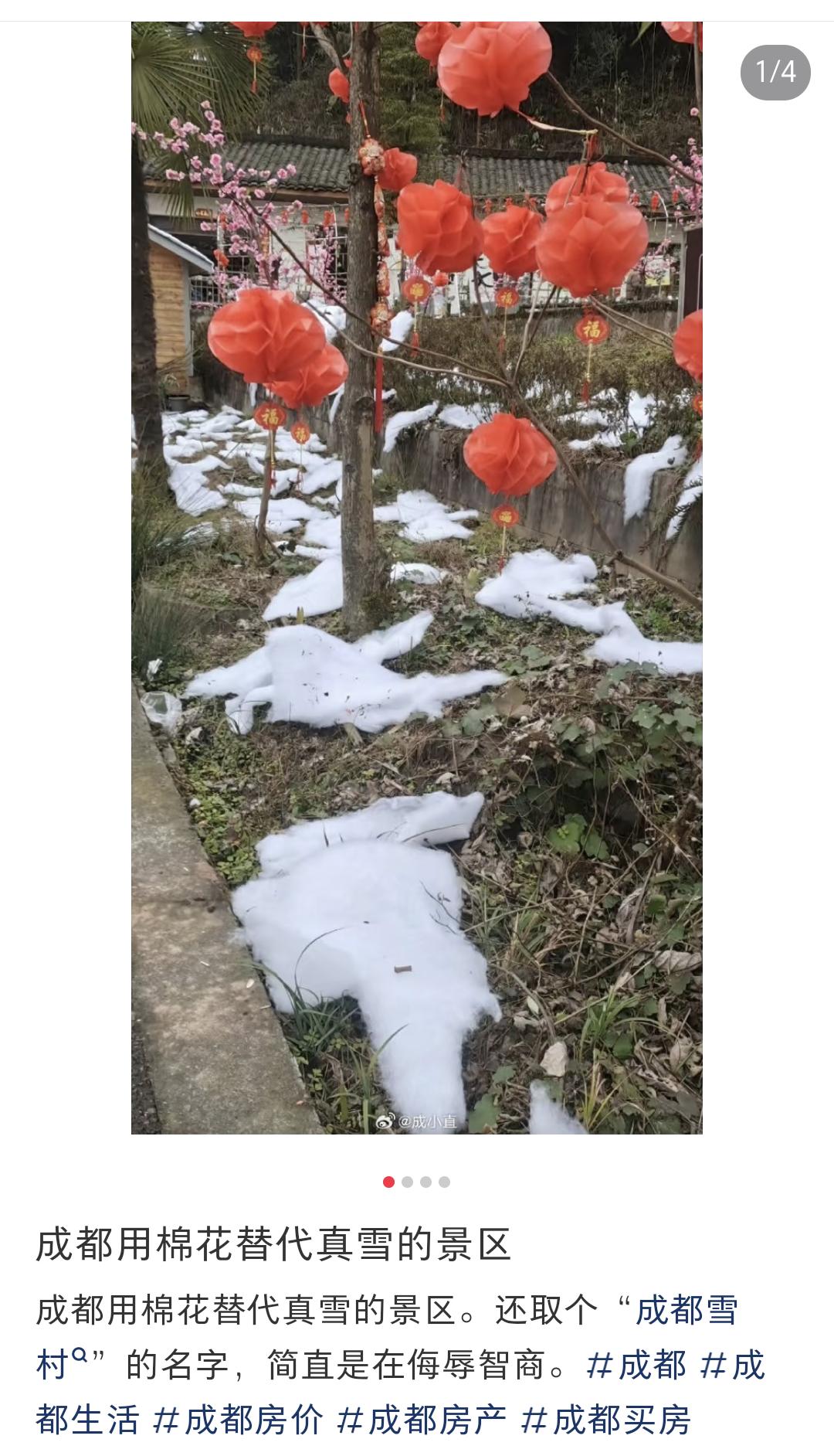“成都雪村”没有雪全是棉花?官方通报