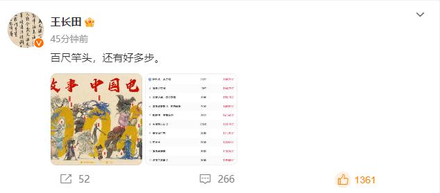 此次《哪吒2》票房破百亿,他发文称:“百尺竿头,还有好多步”。