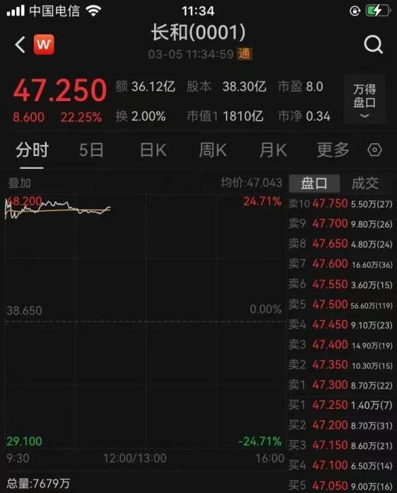 受上述消息影响,3月5日上午,长和股价大涨,截至发稿,涨幅为22.25%,总市值为1810亿港元。