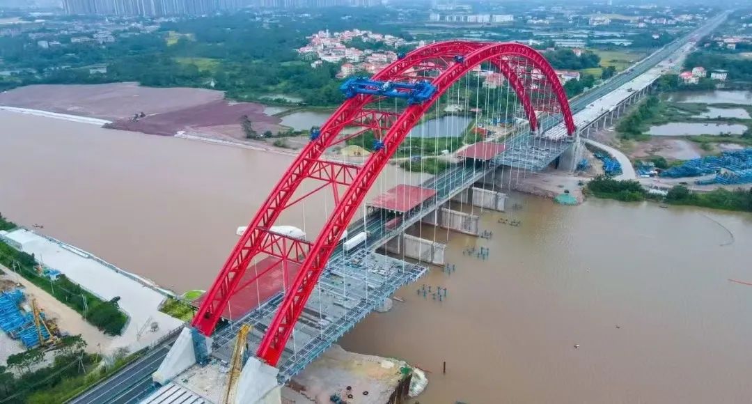 作为平陆运河钦州城区段跨线桥梁建设单位之一,广西路桥集团为项目建设研发了智慧航道预测系统、拱肋施工数字孪生监测平台、智能爬拱吊机等AI“黑科技”,实现施工节奏数倍提升。