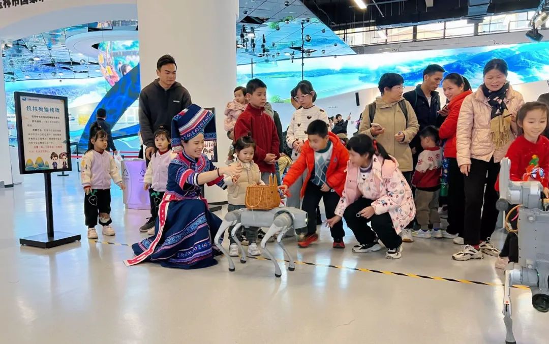活动期间,各地科技馆紧扣 “三月三” 传统元素,精心策划了众多特色科普活动。广西科技馆的科普剧表演和“解码AI拥抱未来”——人工智能科普展,以生动有趣的形式传播科学知识;南宁市科技馆的民族服饰秀,将民族文化与时尚元素巧妙融合;柳州科技馆的非遗竹编DIY簸箕画制作,让民众在动手实践中感受传统工艺与现代创意的碰撞;防城港市科技馆的民族一家亲・环保袋手绘画,既传递环保理念,又增进民族情感交流;百色市科技馆的竹竿舞科普体验,将民俗娱乐与科学知识普及相结合;玉林市科技馆的机器狗接绣球,展现科技与传统民俗的奇妙互动;梧州市科技馆的粤剧脸谱绘制(手工制作),传承地方戏曲文化;平果市科技馆的 “三月三” 彩蛋 DIY 制作,充满节日氛围;三江侗族自治县科技馆的侗族非遗科技秀,展示少数民族独特科技魅力;宾阳县科技馆的山歌对唱活动,唱响民族文化旋律;合浦县科技馆的3D打印笔牵手绣球,科技赋能传统民俗;博白县科技馆的着民族服饰参观领好礼,吸引广大民众参与;富川瑶族自治县科技馆的 “三月三” 科普小课堂,深入浅出讲解知识;罗城仫佬族自治县科技馆的双人机器人跳民族舞,科技与民族艺术完美结合;钟山县科技馆的科普进校园,将科学的种子播撒在青少年心中;兴安县科技馆的科技实验秀、南丹县科技馆的矿物质文化科普展,同样精彩纷呈。