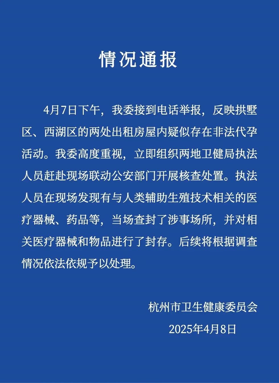 原标题:《出租屋被曝暗藏非法代孕,杭州市卫健委:已查封!》