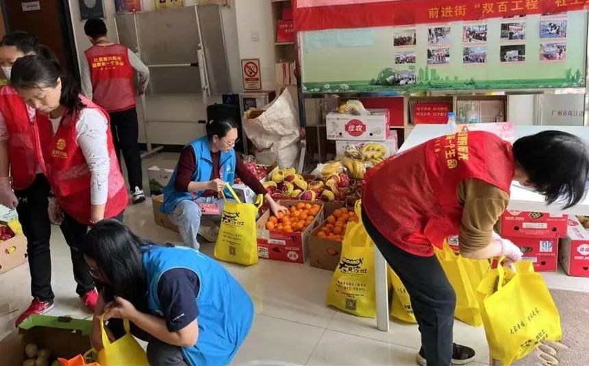 一份份爱心蔬果包,温暖前进街坊的心!日前,前进街“双百工程”社工站联合广州市阳光青藤爱心促进会开展“彩虹菜篮”春日关怀行动,向辖区172户困境家庭及居民免费派发由爱心企业捐赠的新鲜果蔬“春风送暖包”,内含火龙果、沃柑、苹果、羊角蜜、蓝莓等水果,也有生菜、秋葵、青瓜、豌豆等时蔬。