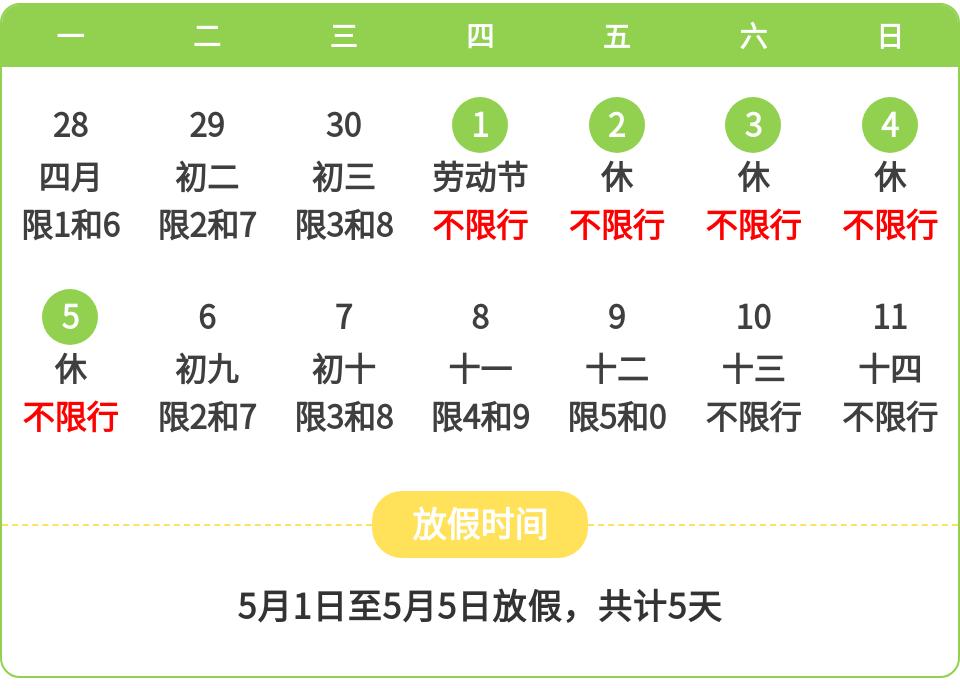 共计5天,不限行