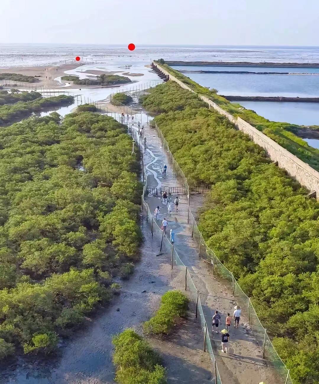 金海湾红树林生态旅游区毗邻北海银滩,是一处集红树林湿地、滨海生态和疍家文化于一体的国家级生态旅游区。这里拥有3000多亩郁郁葱葱的红树林,栖息着白鹭等众多珍稀鸟类,退潮时还可体验赶海乐趣,挖螺拾贝,感受滩涂生态的奇妙。景区内木栈道蜿蜒,可近距离观赏红树林奇观,还能领略疍家民俗风情,是生态旅游与休闲度假的绝佳去处。