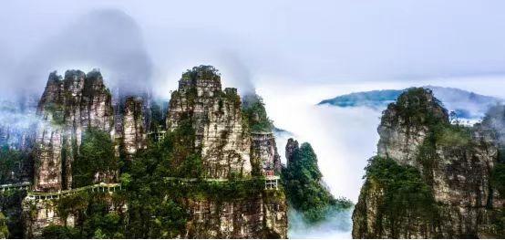 大瑶山盘王界旅游景区大瑶山盘王界旅游景区位于金秀县城西北部16公里处的莲花山脉, 年均气温16 ℃,空气负离子含量高达9194个/cm3,是天然氧吧。景区山水形胜,金秀河与盘王河前后映带,原始森林与天然石林遍布,瑶族村落星罗棋布,因罕见的自然生态体系石英砂岩峰林地貌,造就了沟壑幽深,石壁陡峭、奇峰耸立的神奇景观,拥有32个奇峰景点、14个幽深山谷、9个一线天峡谷及100多座石笋石峰,兼具五岳雄壮与张家界奇秀,是国家AAAA级旅游景区,广西首个山岳型无障碍景区。