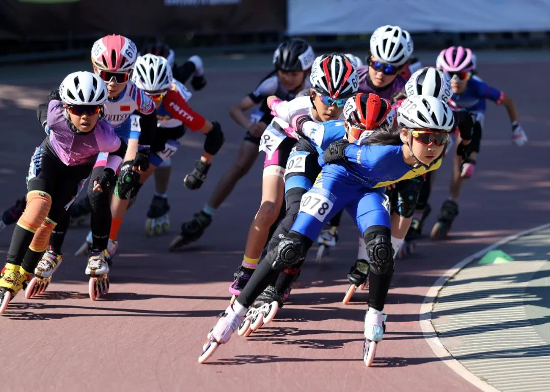 ↑5月1日,参赛选手在少年女子丙组5000米淘汰赛预赛中。2025年全国少年轮滑(速度轮滑)锦标赛在北戴河区奥林匹克大道公园轮滑场开赛。比赛为期4天,由中国轮滑协会主办,市体育局、北戴河区政府承办。新华社记者杨世尧摄