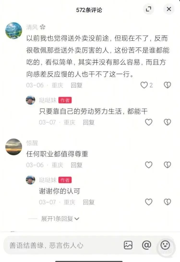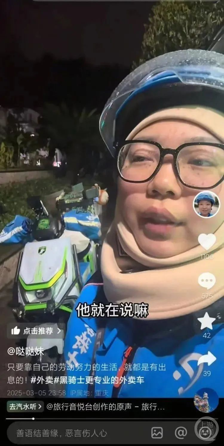 廖泽萌在社交平台上分享送餐的日常廖泽萌说