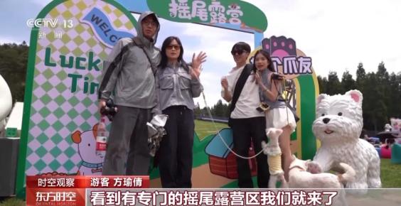 游客 方瑜倩:以前带狗狗出游总担心没地方去,看到有专门的摇尾露营区,我们就来了,这里还准备了拍照道具和宠物零食,也能认识很多朋友。开放政府食堂