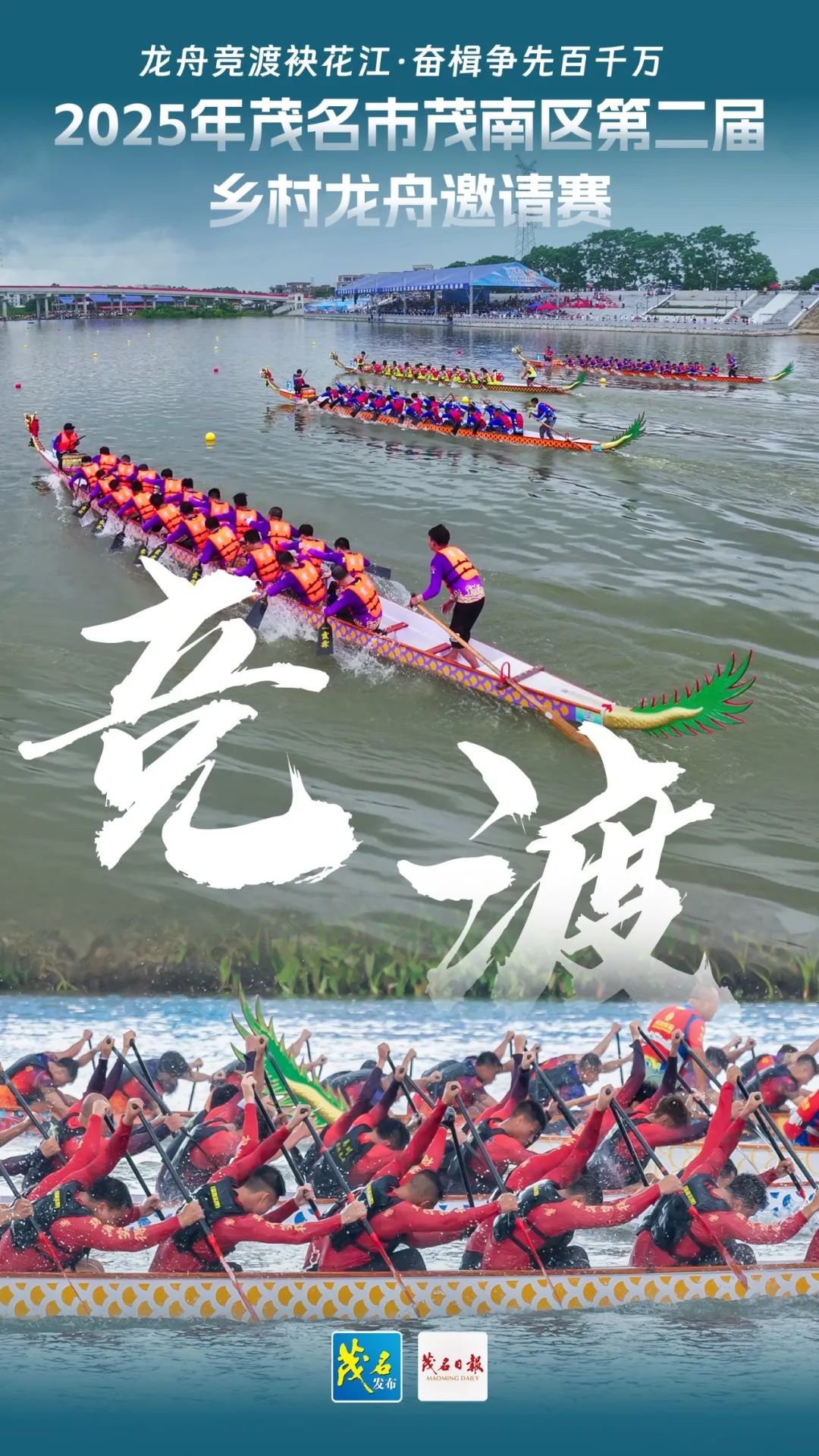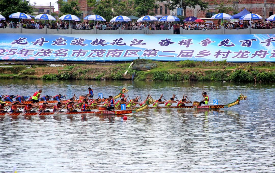 赛事的成功离不开坚实后盾——公安干警全力保障秩序,消防、应急队伍严阵以待,医护人员守护安全,供电、通信及众多志愿者协同发力,织就一张严密保障网。龙舟破浪,承载的是茂南人"敢为人先、力争上游"的奋斗基因;桨声激荡,奏响的是乡村振兴"同心同德、共富共美"的时代强音。茂南正以水为媒,以龙舟赛等特色文体活动为重要抓手,奋力挥动“百千万工程”之桨,在高质量发展的航道上劈波斩浪,全速前进!