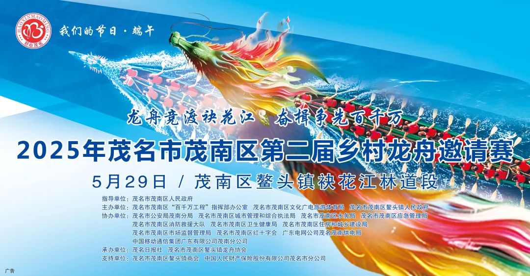 本次龙舟邀请赛,由茂南区人民政府指导,茂南区“百千万工程”指挥部办公室、茂南区文化广电旅游体育局、茂南区鳌头镇人民政府主办,茂名日报社和茂南区鳌头镇龙舟协会承办,茂南区各职能部门联合协办,并得到禅城·茂南对口帮扶协作工作队、茂南区鳌头镇商会、中国人民财产保险股份有限公司茂名市分公司的大力支持。
