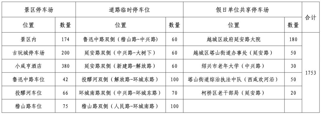 2、香炉峰景区停车场饱和后,交警将根据实际车流量,在大禹路景区入口处实施临时交通管制,引导车辆前往大禹陵停车场停放,同时在周边道路设置临时停车指示牌,引导游客车辆临时靠边停放,扩增临时停车区域有:大禹路(大禹陵景区门口至曹江路,南北两侧辅道)约100余个,大明路(绍甘线至中兴南路,北侧机动车道)约50余个。除上述位置外,严禁车辆随意停放。对影响交通的,依法予以处罚。同时,请广大游客服从现场交警指挥。