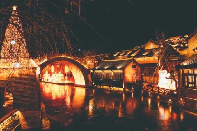 两岸的古建筑跟着游船灯光同步亮起,穿越回明清看漕运盛景