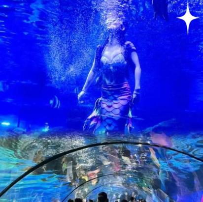水母缸的灯光很有夜色,夜晚的海底隧道能听见鲨鱼游动的声音