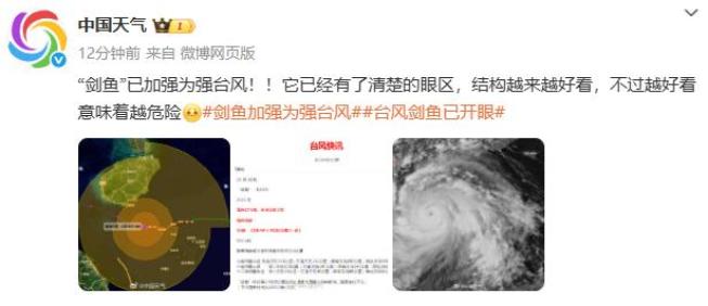 原标题:《14级!强台风级!台风“剑鱼”已开眼!路径更新……》