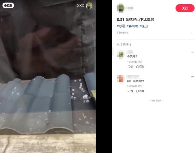 有网友发布视频称,杭州余杭径山已下冰雹。,时长00:03