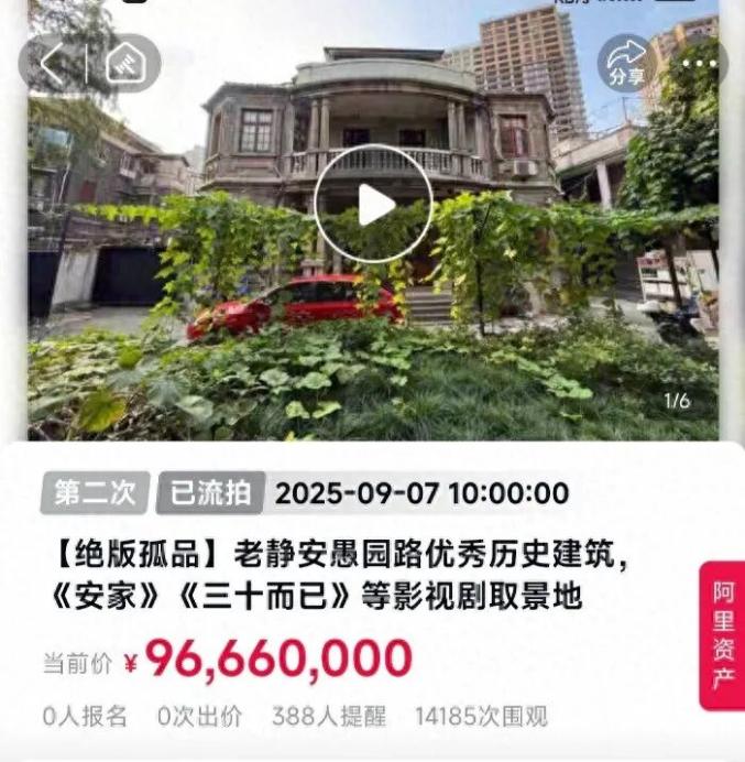 9月7日,记者从阿里资产平台看到,上海一栋百年老洋房二拍降价5300多万,但由于无人参与竞拍,依旧流拍了。这栋老洋房曾是《安家》《三十而已》等影视剧的取景地。一拍时起拍价1.5亿,二拍起拍价9666万,一次性降价5334万元。
