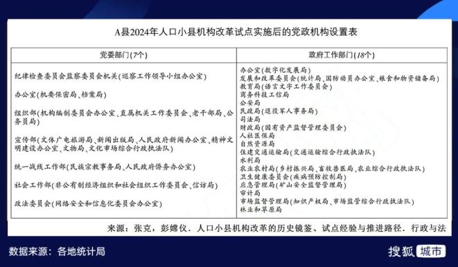 改革后山西单个试点县年节省经费1.1亿元。此后,青海、安徽、湖南、河南、内蒙古等地陆续跟进——与山西类似,这些省份试点小县多是偏远、生态、民族或边境县,绝大部分属收缩区域。截至去年,97个试点县全部完成。从效果看,效能提升还有明显的。例如,西部A县将党政机构由35个压减至25个,精简29%。部门平均编制由5人增至8人,原20余名办公室、财务人员过半充实一线业务。机构减少公用经费压减,办公用房精简533平方米,年节支逾百万元。今年以来,“精明收缩”进一步延伸至基层。