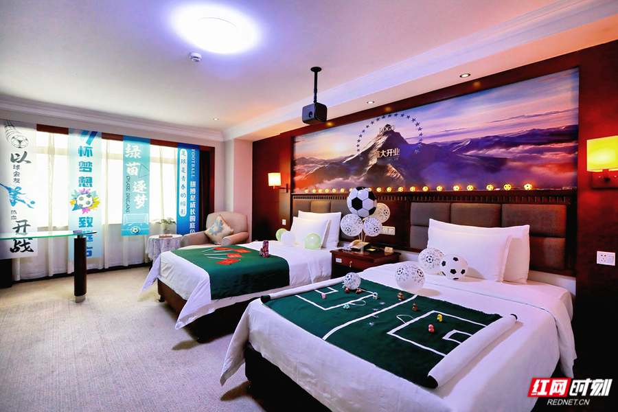 长沙通程国际大酒店、湖南金源阳光酒店等纷纷推出足球主题客房,配备球队主题床品和定制足球抱枕;永州祁阳源福温德姆酒店等则设立“第二观赛场”,配备专业影音设备,组织球迷集体观赛;邵阳湘林温德姆至尊豪廷大酒店等联合崀山风景区打造“观赛+住宿+游览”打包服务。