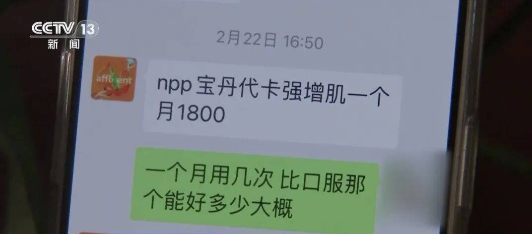 如此高强度的“增肌”训练,让小陈体力迅速透支。这时,教练暗示她,可以走“捷径”来增肌,用“美替”帮助肌肉恢复,并谎称完全没有副作用。