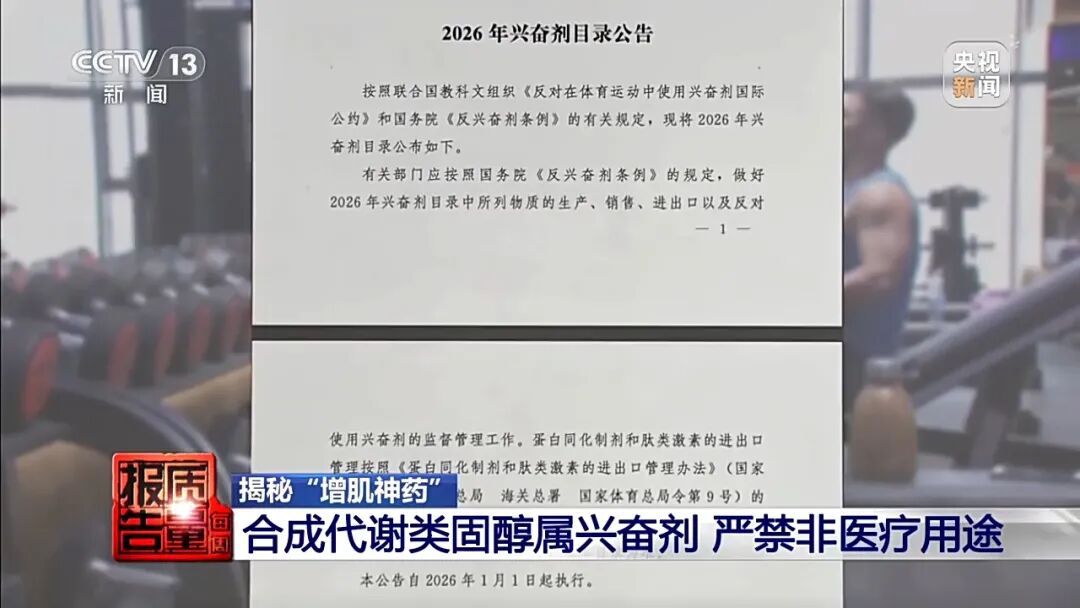 江苏苏州市检察公益诉讼食品药品检测实验室顾问温尧林表示,从这三款产品中检测出了三种合成代谢类固醇,宝丹酮十一烯酸酯、环戊丙酸睾丸酮和去氢甲睾酮,与包装英文标识一致,但都未获国家药监局批准,在我国不合法。