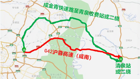 绕行方式:从成金青快速路、金堂大道、桂竹路绕行至二绕高速或成南高速淮口站、冯店站、成巴高速金堂站进入高速。