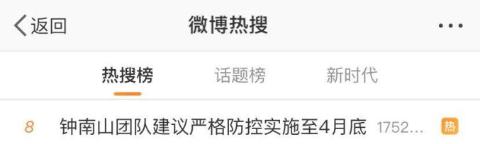 钟南山团队“严格防控实施至4月底”的建议还一度冲上热搜。不少网友表示认同:再坚持一下!