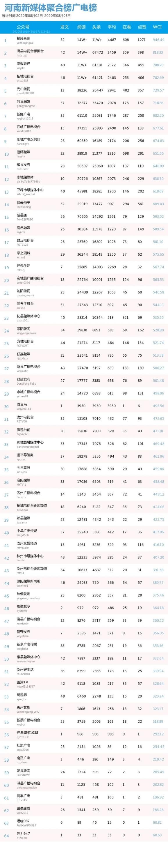 本周自媒体排行榜